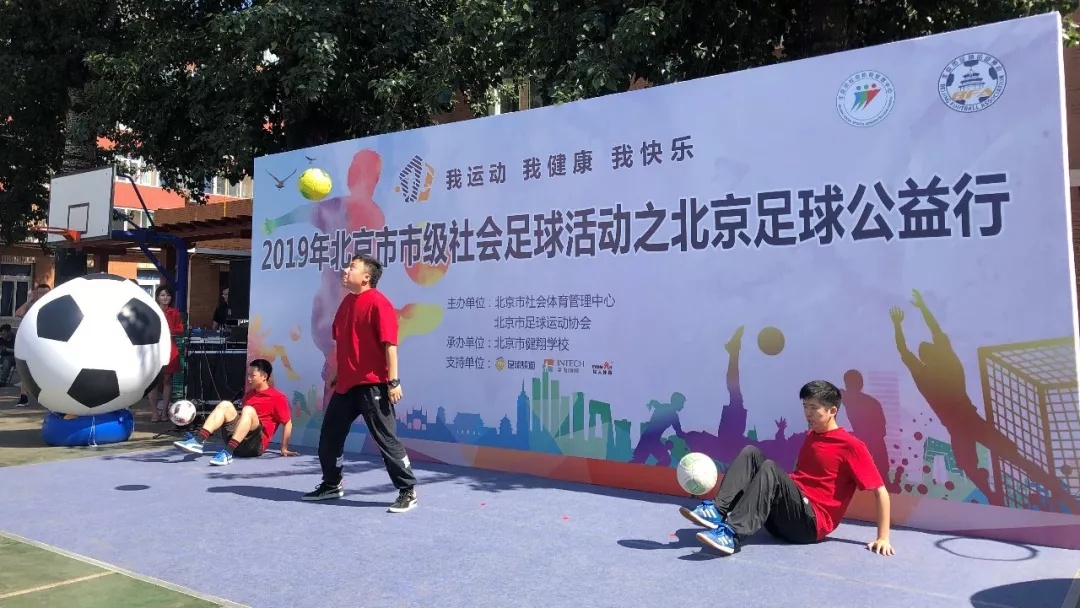7月3日下午,2019年北京市市级社会足球活动之北京足球公益行在北京市健翔学校举行。北京市社会体育管理中心、北京市足球运动协会、健翔学校相关负责人出席了本次活动。 活动中,北京市健翔学校于文校长代表学校致欢迎词,北京市社会体育管理中心副主任孔宪菲代表活动主办方向健翔学校捐赠了足球器材,活动现场还融入了精彩的花式足球表演,展示足球运动的魅力,燃起了同学们参与足球运动的热情。