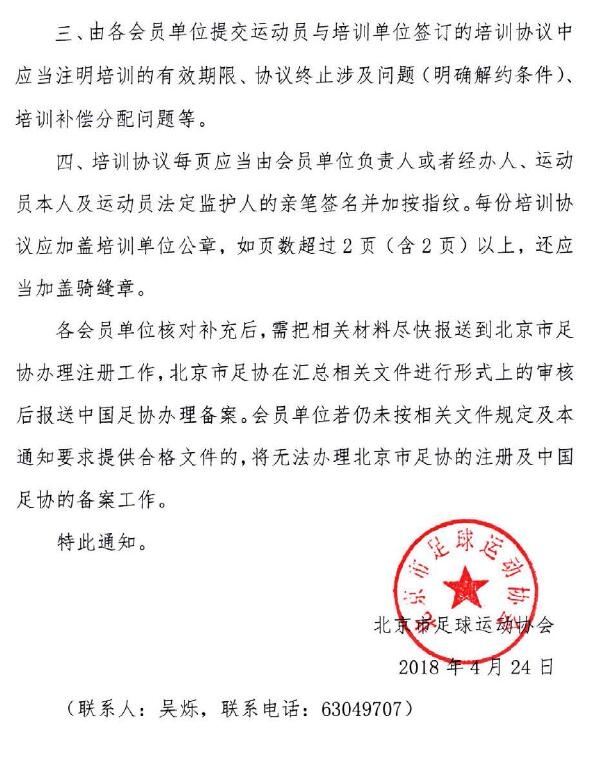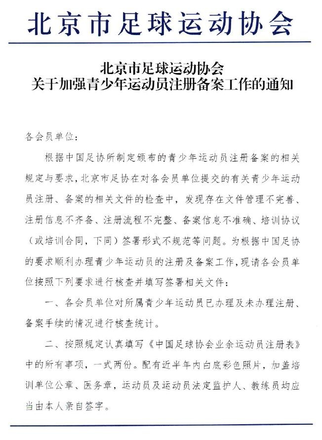 北京市足球运动协会关于加强青少年运动员注册备案工作的通知