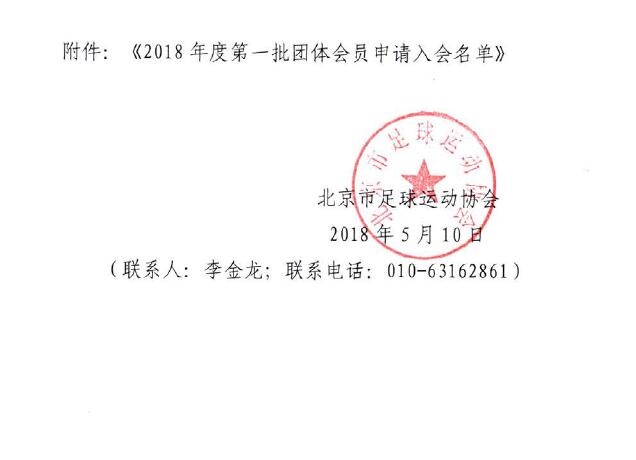 北京市足球运动协会关于2018年度第一批团体会员申请入会情况通报