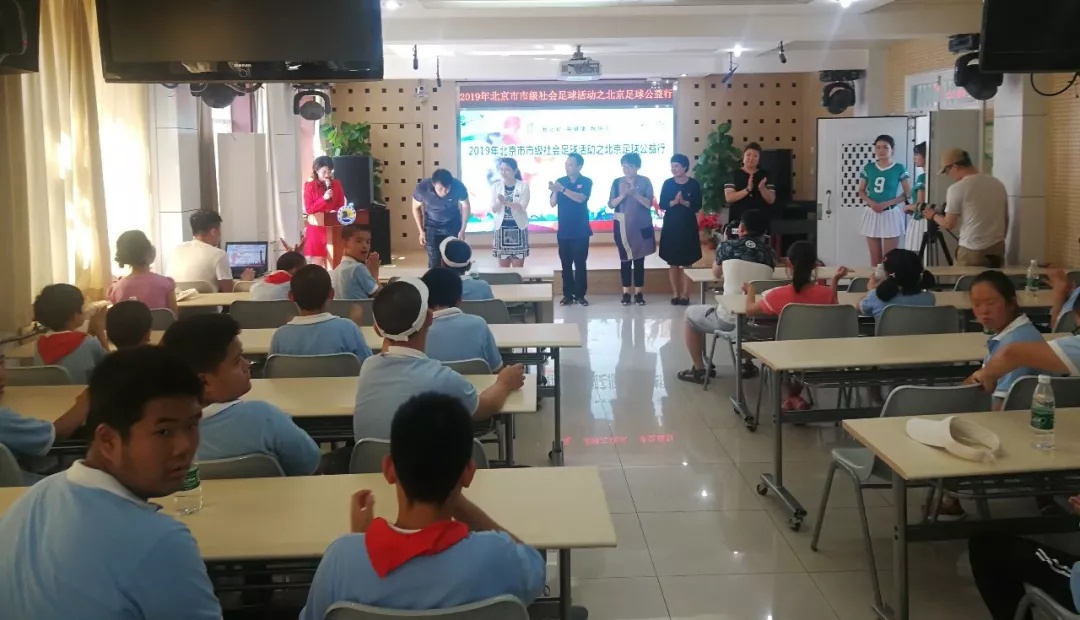 7月3日下午,2019年北京市市级社会足球活动之北京足球公益行在北京市健翔学校举行。北京市社会体育管理中心、北京市足球运动协会、健翔学校相关负责人出席了本次活动。 活动中,北京市健翔学校于文校长代表学校致欢迎词,北京市社会体育管理中心副主任孔宪菲代表活动主办方向健翔学校捐赠了足球器材,活动现场还融入了精彩的花式足球表演,展示足球运动的魅力,燃起了同学们参与足球运动的热情。