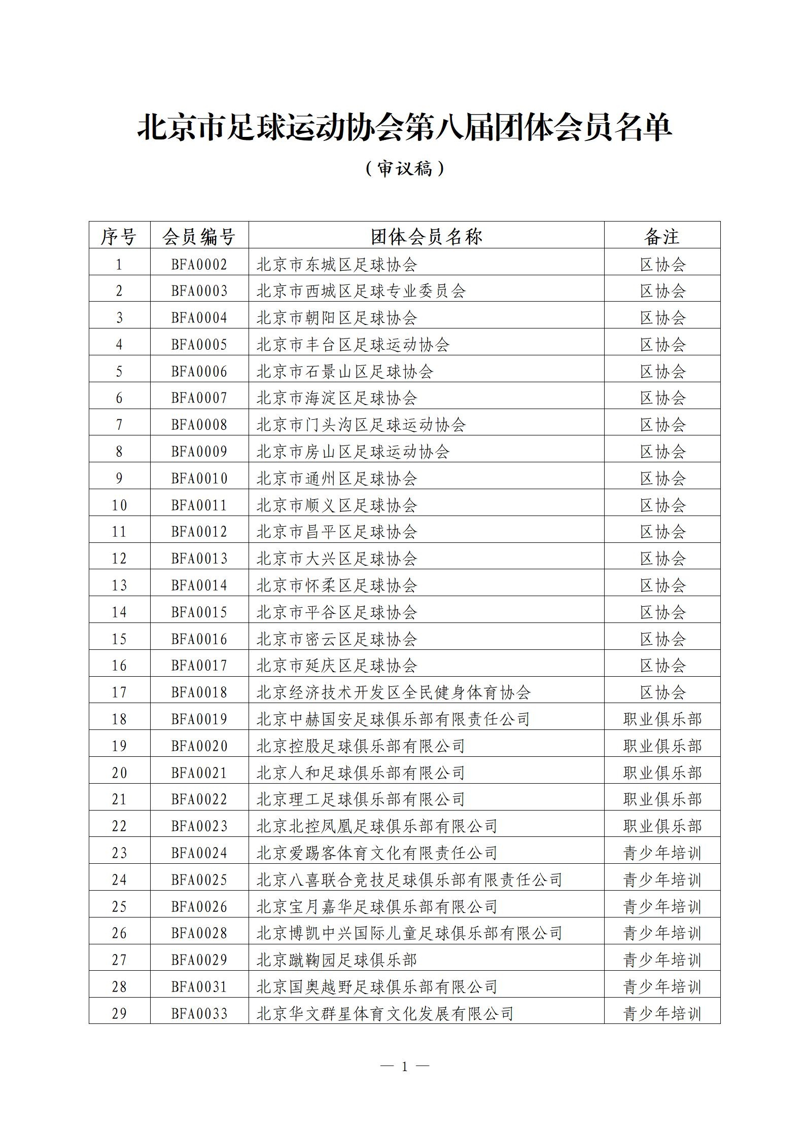 北京市足球运动协会第八届团体会员名单