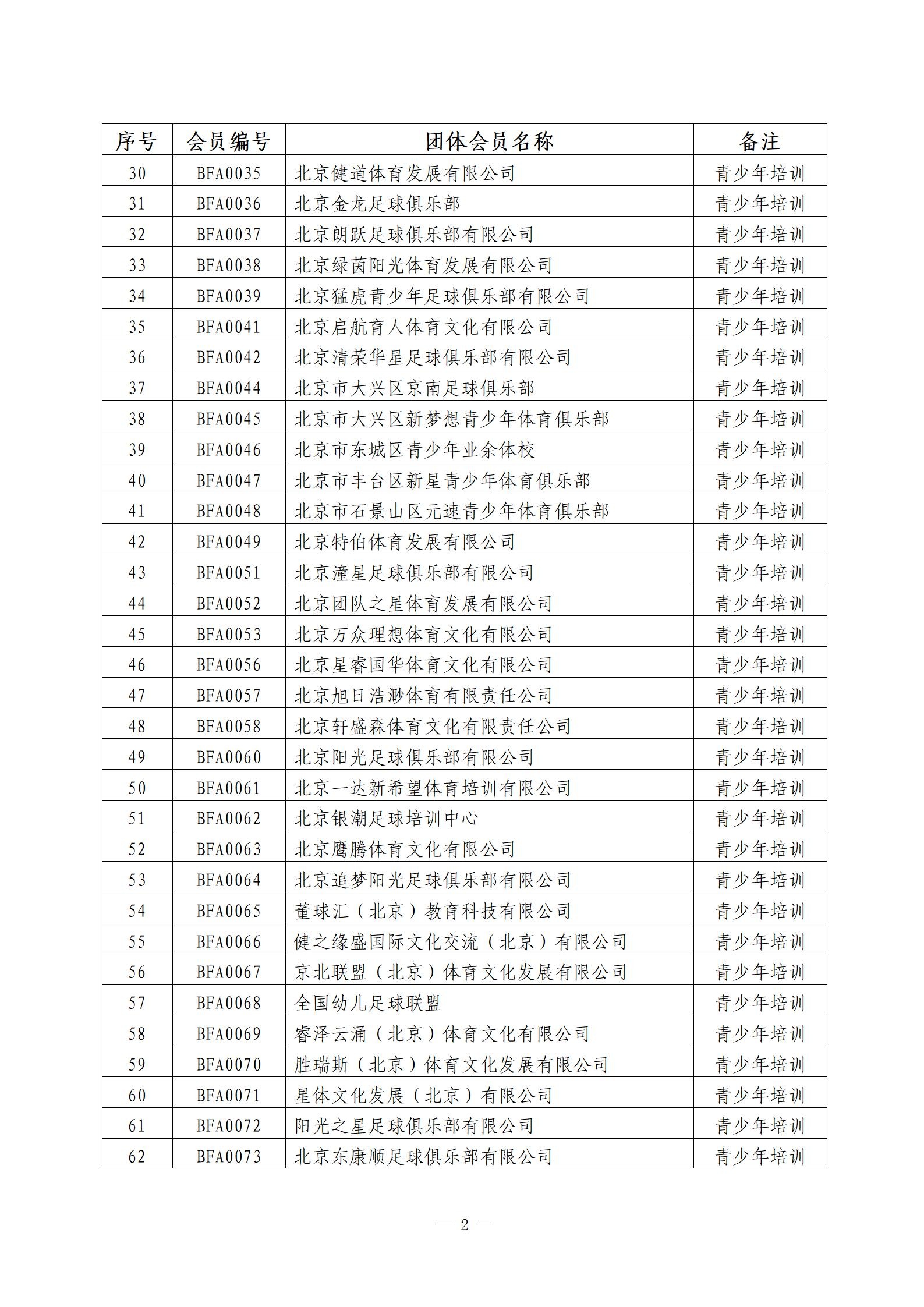 北京市足协新增团体会员单位