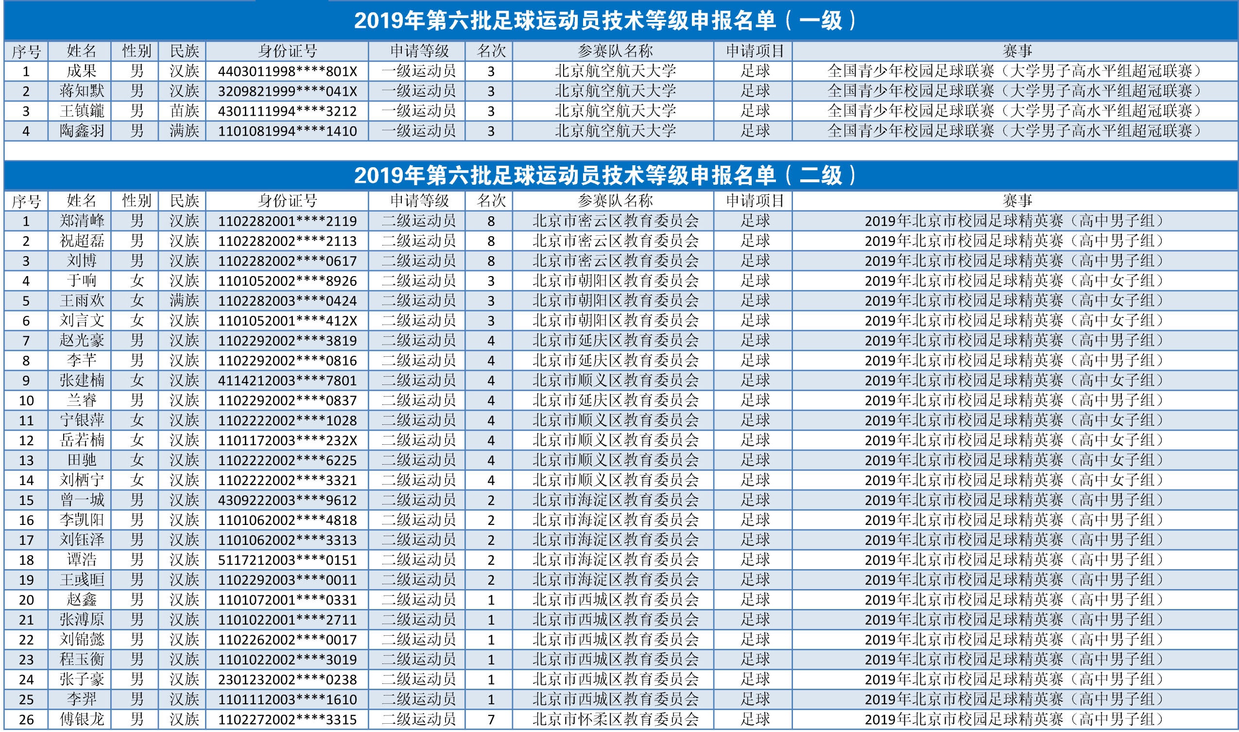1.2019年第六批足球运动员技术等级申报名单(一级)