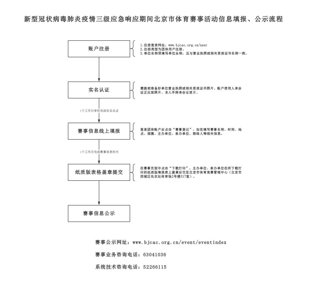 附图:新型冠状病毒肺炎疫情三级应急响应期间北京市体育赛事活动信息填报、公示流程