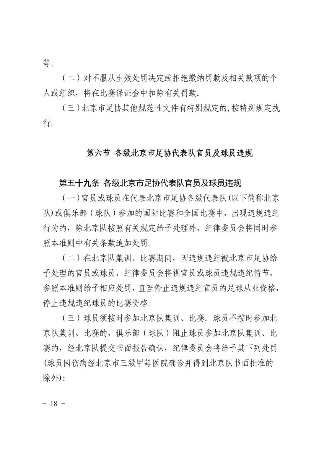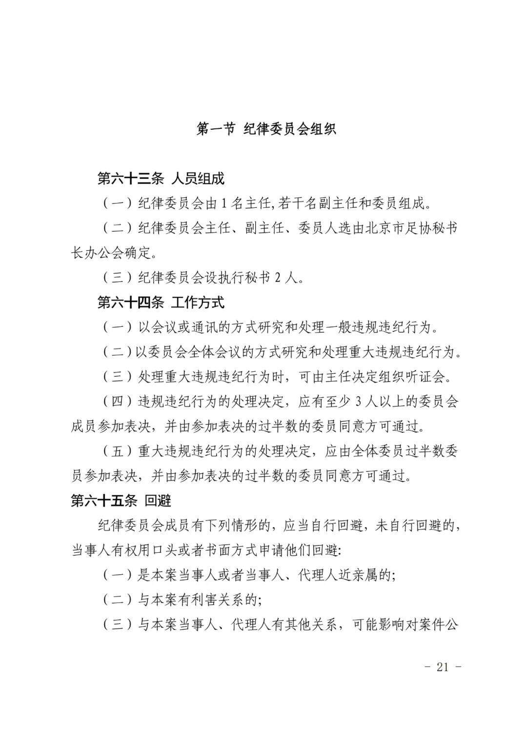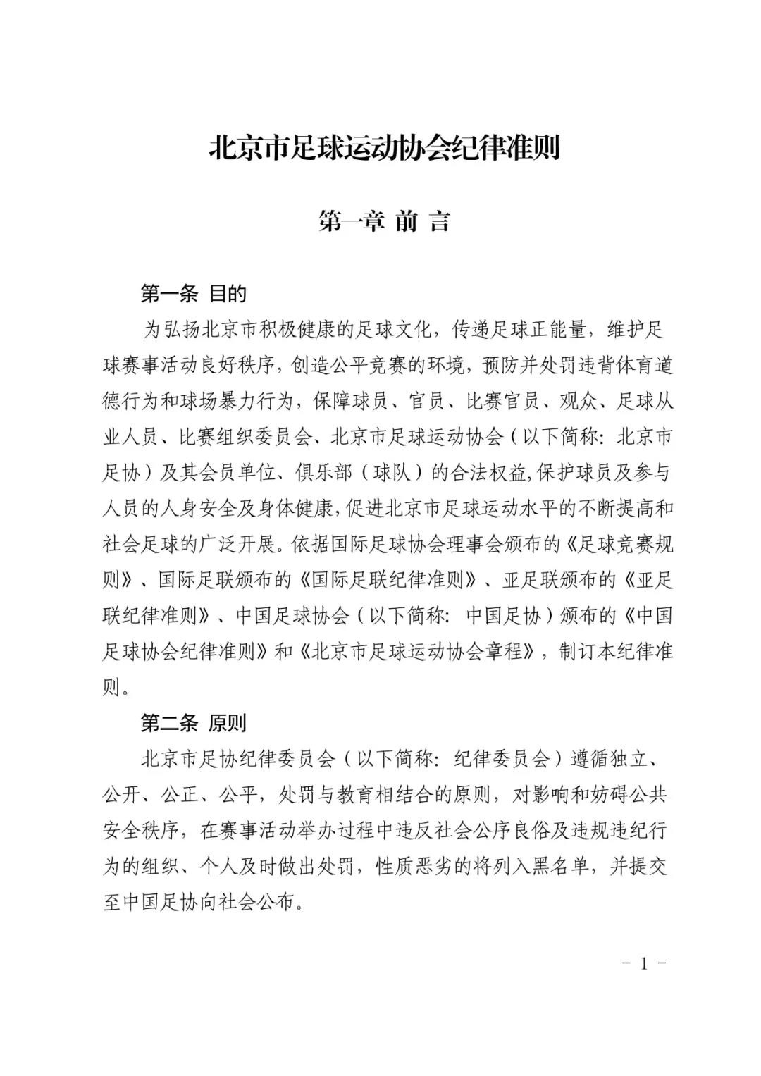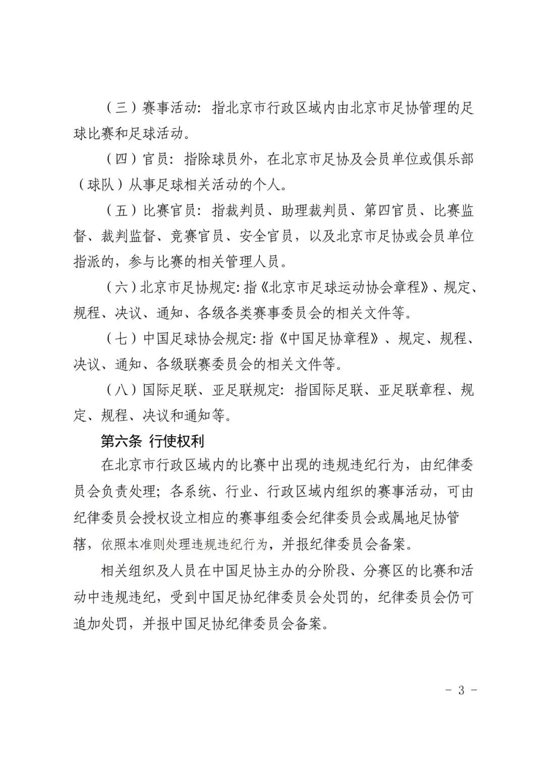 北京市足球运动协会关于印发 《北京市足球运动协会纪律准则》的通知