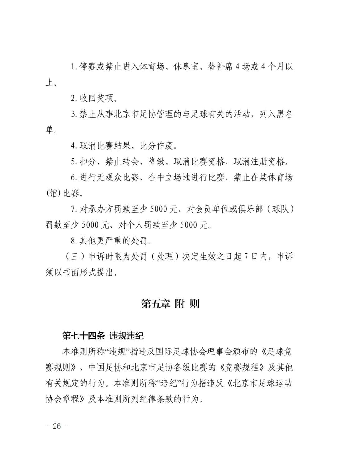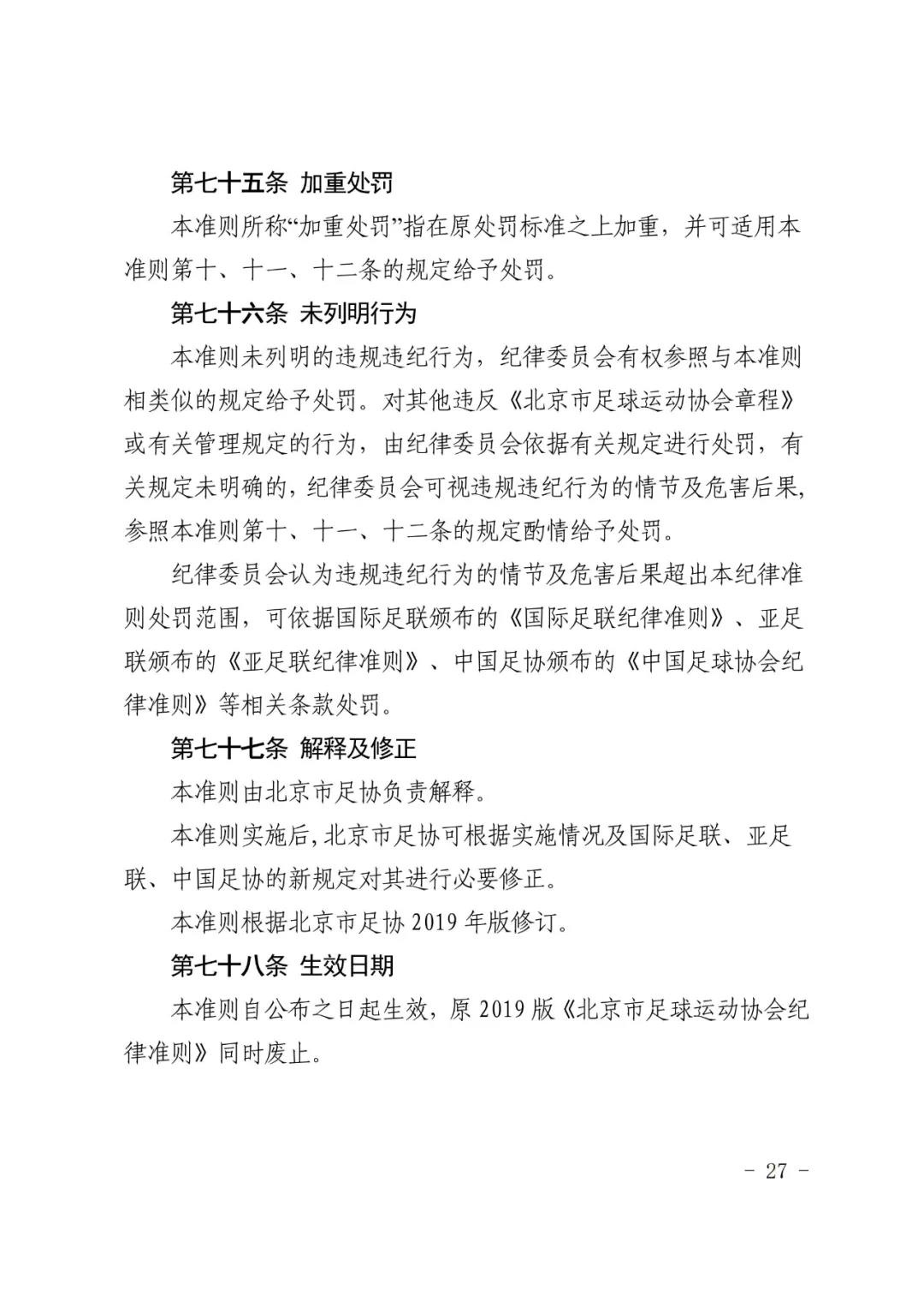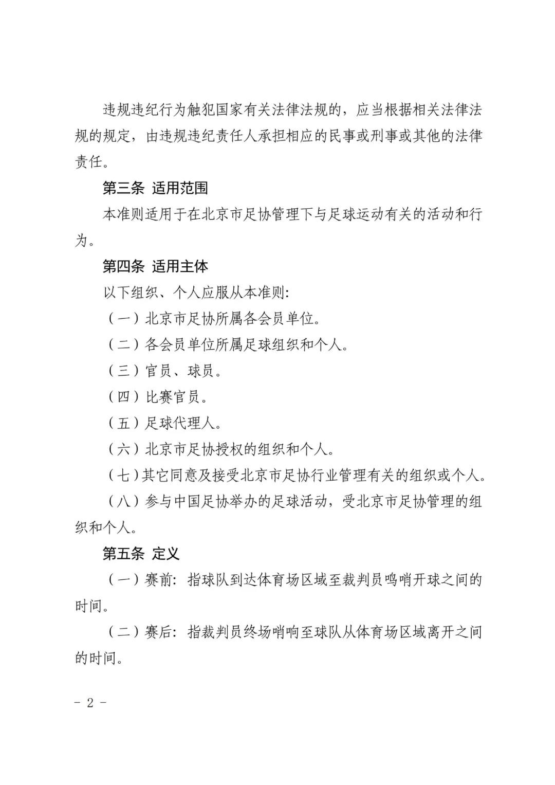 北京市足球运动协会关于印发 《北京市足球运动协会纪律准则》的通知