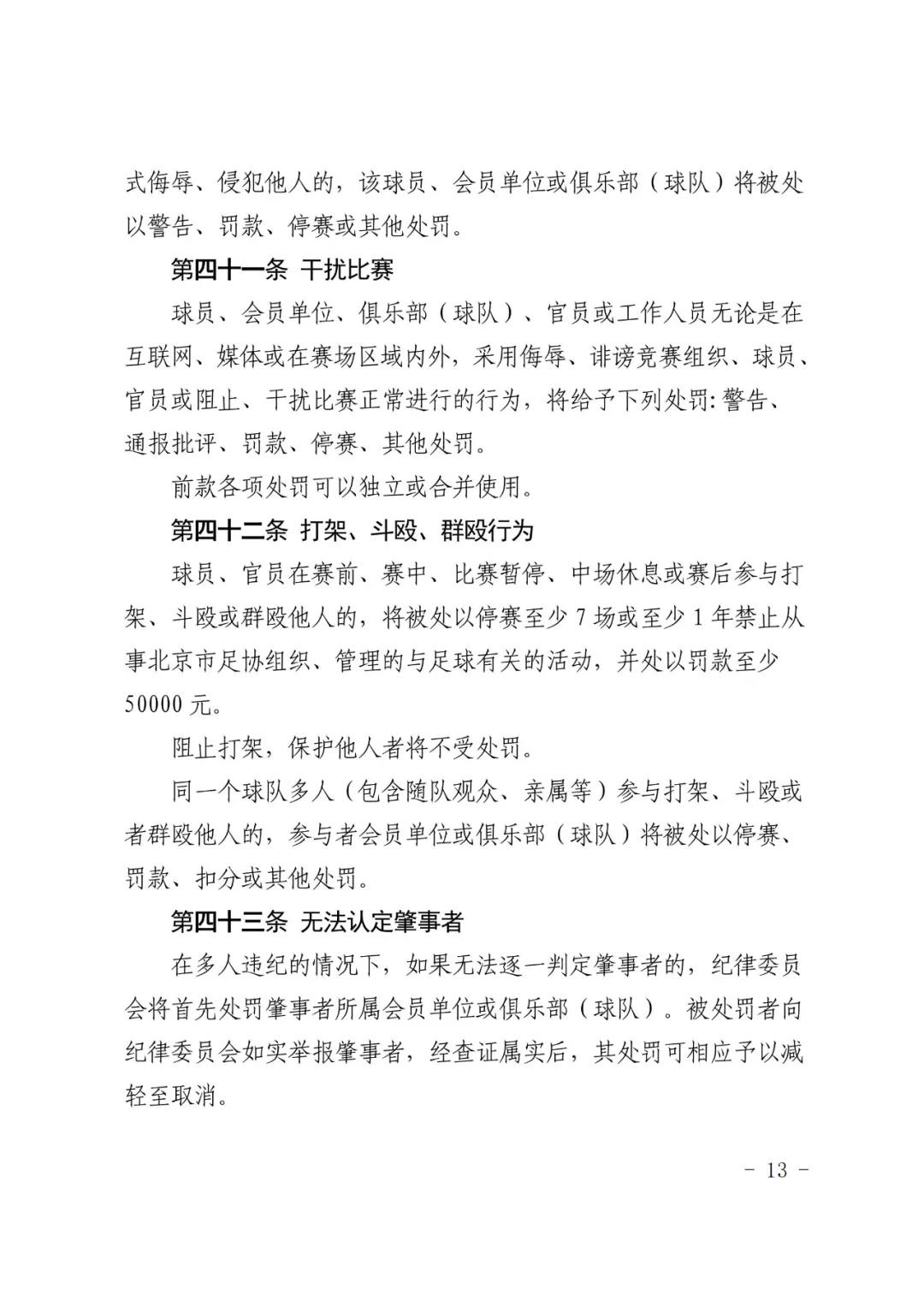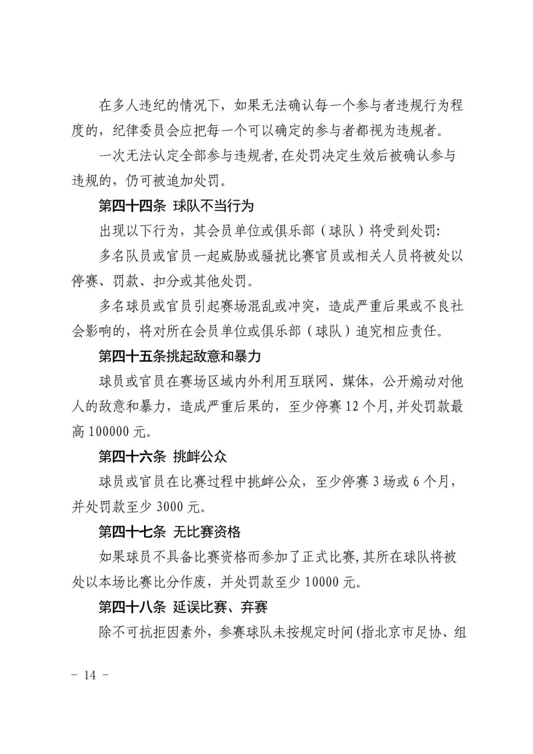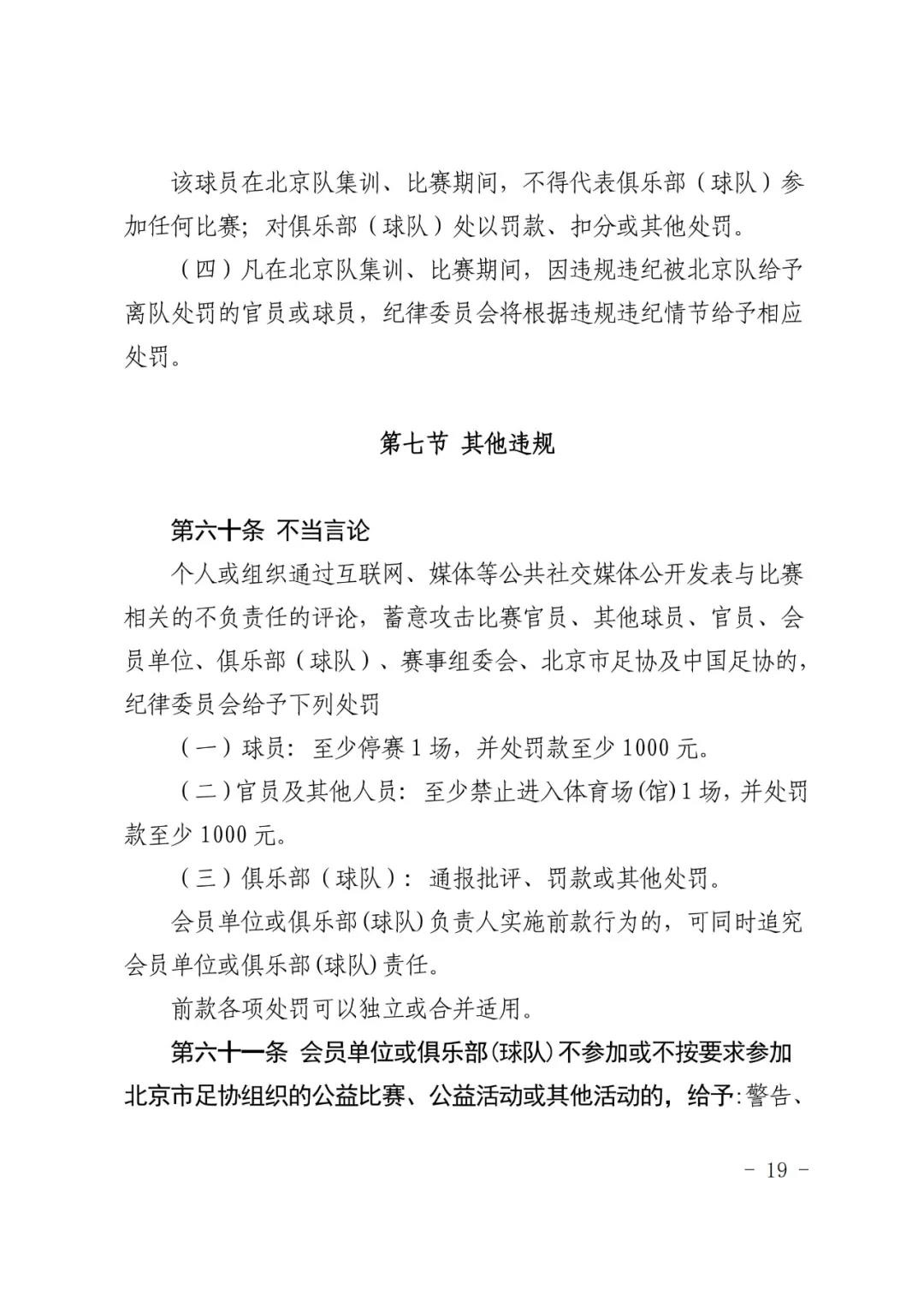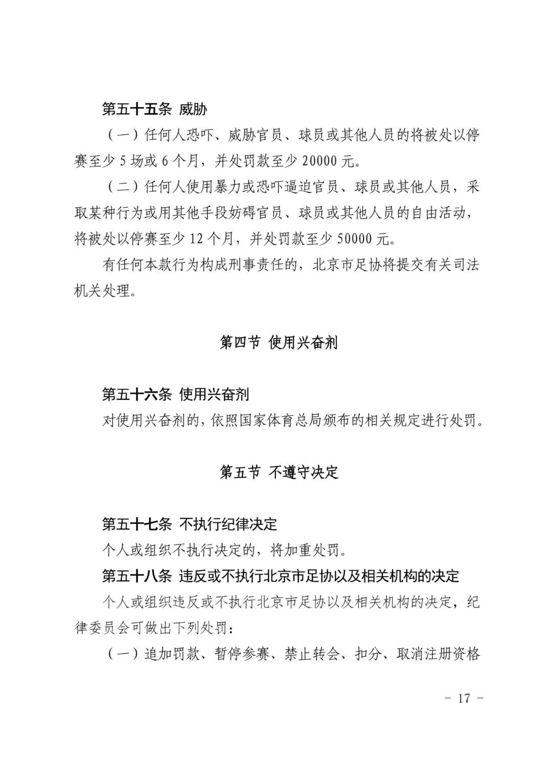 北京市足球运动协会关于印发 《北京市足球运动协会纪律准则》的通知